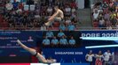 メダルを狙ってリスク承知で挑戦した演技も、まさかの大失敗に会場が静まり返った。「世界水泳シンガポール2025」17日目が7月28日に行われ、男子3mシンクロ飛板飛込でドイツのティモ・バーテル、モーリッツ・ヴェーセマンが、難易度3.5の307C(前逆宙返り3回半抱え型)に挑んだものの、一方が回転不足で2回転半になってしまい、まさかの「0点」を記録した。