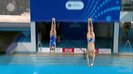 挑戦するのは難易度2.0の『201B』。後ろ向きで両腕を大きく広げ、息を揃えて高く飛び上がった2人だが、落下する際に謝選手のつま先がわずかに飛込台に接触。角度にズレが生じ、入水のタイミングこそ合わせたものの謝選手は大きな飛沫をあげてしまった。
