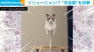 「浮遊猫を目撃した」というコメントとともに、猫のミミちゃん(5歳)の飼い主(@ragdoll0504)が投稿した画像には、まるで空中に浮かんでいるかのように見えるミミちゃんが写っている。これは鏡を使ったトリックアート的な画像とのこと。キャットタワーで遊んでいたミミちゃんをテレビの反対側から撮影すると、不思議な「浮遊猫」が完成したという。