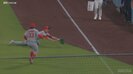 3-2とカージナルスが1点リードで迎えた9回裏、無死一塁で打席にはベッツ。カウント1-0からの2球目、ベッツが打ち上げた打球はライトのフェアゾーンの厄介な位置へと落ちていく中、ヌートバーが猛然と前進。体ごと飛び込むようなヘッドスライディングでボールを掴み取った。