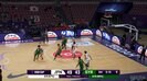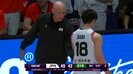 馬場はアウトサイドから回り込んでパスを引き取ったデシールズに足をしっかり動かして対応。相手エースのドリブルに対して、ハードかつ粘着質なディフェンスで自由を与えない。ドライブに対しても両手を目一杯広げながら、身体をぶつけてバランスを崩させる。最後はターンしてくる相手に強めにぶつかって転倒させたことでファウルとなったが、してやったりのディフェンスに馬場も思わず咆哮。ベンチ前にいたトム・ホーバスHCも思わず拍手を送り、馬場とハイタッチをかわした。