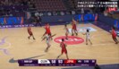このタイミングで、ジェイコブス晶が右の大外を回ってゴール下へ。この動きを見逃さなかったハーパージュニアは、左サイドから中央にドライブを仕掛けて、ジャンプしながらボールを右手で押し出すようにスキップパスを通す。ライナー性の超高速パスをしっかりとキャッチしたジェイコブスが、そのままシュートを決めて2点を追加した。