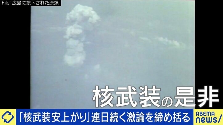 戦時を生きた80代と核武装論…今後は「タブー視しないことが大事」「『安いから持っていい』『持たなきゃ他国になめられる』議論はすべきでない」 ABEMA Prime 2025/08/24 09:30 拡大する 核政策をめぐる、日本の姿勢が注目されるなか、いわゆる「核武装安上がり論」に加えて、核に対する日本の矛盾も議論されている。日本は今、アメリカの拡大抑止、いわゆる「核の傘」に守られている。しかしその一方、NPT(核兵器の不拡散に関する条約)の枠内で、核兵器廃絶に向けた取り組みを進めていることに対し、行動が矛盾していると指摘されているのだ。 石破茂総理は、アメリカの核抑止に頼ることと、核兵器廃絶の両立に矛盾はないとしているが、Xでは「核の傘に守られながら核廃絶を訴えるのは詭弁」「被爆国日本は、核廃絶に全振りすべき」「石破さん、核共有論者じゃなかった?」といった指摘も。そこで『ABEMA Prime』では、戦争を生き抜いた80代の専門家2人と、核武装の是非を議論した。 続きを読む