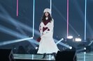 「1st FASHION SHOW STAGE」ステージのトップバッターとして登場した藤田。全身白色のコーデで、ファーの帽子に、前面と背面に大きな赤いハートが刺繍されたニット、ティアードスカートを着用。黒のショートブーツで全体を引き締めつつ、赤いチェック柄のバッグがアクセントとなり、キュートでカジュアルなガーリースタイルを披露した。