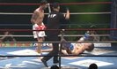 ドーピング問題からの再起を図る木村は1ラウンド、早々にボディをねじ込んでダウンを奪う。その後も攻撃の手を緩めない木村は左フックで追撃。あっという間に決着をつけた。