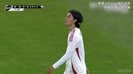 かぶり、ボールの落ち際を叩いた。惜しくもボールを抑えることができず、このシュートはクロスバーを超えたが、スタジアムが騒然とする日本代表の決定機だった。