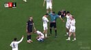 堂安は足を抑えて悶絶し、チームメイトたちも駆け寄って心配する。一方、19分にイエローカードを貰っていたアンドリッヒは、このファウルで二度目の警告となって退場にとなった。