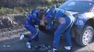 チリの中南部、ビオビオ州周辺に設けられた16のステージで争われる『ラリー・チリ』は、起伏の少ない平坦な道が多いものの、路面はタイヤに厳しい。その対応にしくじったのか、フォードMスポーツのジョシュ・マッカーリーンは、SS1でいきなりつまずく。両側を鉄条網で囲まれた狭いコースを走行中、ゆるい左コーナーを抜けようとしたところで、バランスを崩してマシンがスピンしかけてしまったのだ。