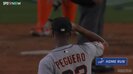 MLB公式データサイト『Baseball Savant』によると、ペゲーロが投じた一球は99.9マイル(約160.8キロ)。空振りを狙ったであろう高めのストレートを、ものの見事に弾き返した。打たれたペゲーロもインパクトの直後に打球の行方に目を向けず、下を向いてがっくりとした様子。誰よりも早くホームランを“確信”していたかのようだった。