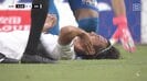 弾丸ミドルが顔面に直撃。幸いにもプレーを続行することはできたが、痛々しいシーンには心配の声が集まった。