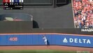 5回裏・メッツの攻撃。この回先頭の7番ブレット・バティは、ナショナルズ先発のジェーク・アービンに対し、外角高めのボール球2つを見送り、カウント2-0とすると、3球目、ストライクをとりにほぼ真ん中に甘く入った148km/hの直球をフルスイング。すると打球は快音を響かせながらセンター方向へと瞬く間に高速で伸び上がる長打性のライナーに。マウンド上のアービンはすぐさま被弾を覚悟したかのようなリアクションを見せていたが、その間も伸び続けた打球は、やがてフェンス際でやや失速しながらもフェンスオーバーするか否かという一打に。