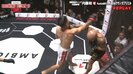 ゴングが鳴ると、すぐにクサノが飛び蹴りをして攻め込むなど、試合をコントロール。解説席の大沢ケンジも「クサノ選手、アマチュアでも名前を結構聞きますからね」と評価していたその時だった。左フックをかわした内藤の右カウンターが見事クサノの顔面をとらえダウンを奪う。