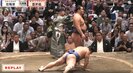 優勝の行方を左右する結びの一番は、横綱の変化により一瞬で決着がついた。館内騒然となった次の瞬間、向正面に座る有名女性が“ひと際目立つ”大リアクション。まるでムンクの『叫び』にも似たカメラが捉えた“感情ダダ漏れ”の瞬間だった。