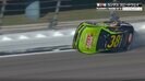 267周のレースは残り5周の時点でイエローコーションが出ていたため、延長して2周を追加する『オーバータイム』ルールが適用される。しかし、リスタートと同時に大きなアクシデントが発生した。16位を走行中だったゼイン・スミスの38号車のマシンが画面に映し出されると、なんとマシンが真横を向いた状態でウォールに張り付いたまま滑っていたのだ。解説のジャック・アマノ氏も「うわ」と驚きの声を漏らすと、2回横転してコース上で停車した38号車は、360度あらゆる部分が凹んだり削れたり、ボロボロの痛々しい姿に。さらにアマノ氏は「あんなに横になって走ってるの見たことないです」とコメントしている。