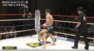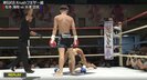 水津もベテランの意地を見せ、すぐに立ち上がり戦線復帰。前へ出てパンチを振り回すが、ダメージが蓄積した足は伸び切ったまま。左足で支えるのがやっとという様子でバランスを崩しながらパンチを放つが、松本は容赦なく右足へカーフを打ち込んでいく。その後も松本は落ち着いて対処し、ボディ、顔面へ正確な打撃を重ねていく。防戦一方の水津はロープ際に押し込まれ苦しい展開。パンチを振るい気持ちを見せたが、がら空きの右足に再びカーフが突き刺さる。