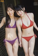 限定版の裏表紙は同じくSKE48から、『Karma』で初選抜メンバーとなった相川暖花と西井美桜が登場し、ペア水着グラビアを披露。期もチームも違い初ペアとなる2人だが、ホースで水をかけ合うなど楽しそうに夏のグラビアを満喫している。