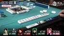 この試合は東家から下石、EX風林火山・勝又健志(連盟)、EARTH JETS・逢川恵夢(協会)、KADOKAWAサクラナイツ・阿久津翔太(連盟)の並びで開始。東3局、下石は發単騎の七対子リーチ。これをしっかりツモり上げ、リーチ・ツモ・七対子・赤の8000点が完成。下石はデビュー間もない新鋭だが、これまでにも単騎待ちでのアガリが目立ち、放送席からは「単騎の戟」の異名が飛び出した。