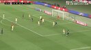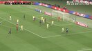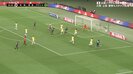 相手陣内の右サイドの深い位置で上田からパスを受けると、正面をDFカルロス・アウグストが塞いできた。細かいステップとボディフェイントで相手を揺さぶりながらボックス内に入り、左足首を使った急加速で縦に突破。アウグストが左足を伸ばしてクロスをブロックしようとしてきたが、それを待ってましたと言わんばかりに右足でのグラウンダークロスで股を抜いてボールを送った。ゴール前の味方には合わなかったが、インテルでプレーする相手DFに技術と駆け引きで上回った。