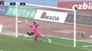 湘南ベルマーレのGK真田幸太が、最後まで動くことを我慢してど真ん中へのPKをストップ。味方のミスを帳消しにする圧巻セーブにファンが興奮している。