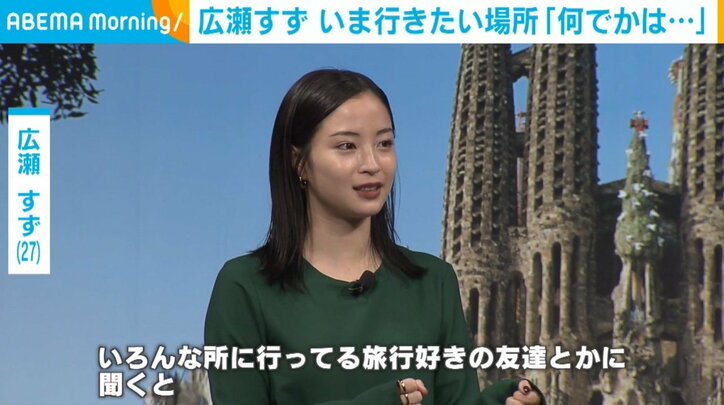 広瀬すず、“いま行きたい場所”を明かす「友達に聞くと良かったという人が多かった」 ABEMA Morning広瀬すず 2025/10/22 11:04 拡大する 21日、都内で行われた富士フイルム「instax“チェキ”新製品発表会」に、俳優の広瀬すず(27)とお笑いトリオ「3時のヒロイン」の福田麻貴(37)が登壇した。 発表会では福田とともに、スペインのサグラダ・ファミリアのパネルをバックにセルフィー写真を撮った広瀬。いま行きたい場所も「スペイン」だそうで、次のように理由を語った。広瀬「何でだったか忘れてしまった。今年すごく旅行に目覚めた。いろんな所に行ってる旅行好きの友達に聞くと、結構『スペイン良かった』という人が多かった。海外にプライベートで行くことが全然多くないので、いつか行ってみたい」 続きを読む