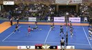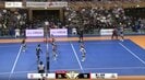 ネットを超えてから鋭く落ちる“魔球サーブ”を前に、姫路の選手は一度、重心を後ろに傾けてから前に出される形となりレシーブできず。花岡はサーブからこの試合で2つ目となるポイントを獲得するとアリーナがどっと沸いた。