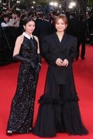 一方、川口春奈は立体的なショルダーが特徴的なブラックスーツドレスで登場。ジャケットスタイルのトップスに、チュールを重ねたロングスカートを合わせたコーディネートは、凛としたモード感と華やかさを兼ね備えていた。レッドカーペット上では、観客の声に応え、笑顔でサインや撮影に応じる姿も見られ、その自然体のふるまいが温かみを添えていた。