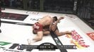 同じく解説の髙阪剛が「たぶんつま先が返っていない」と指摘した直後、キャプテン☆アフリカが左足をリリース。何事もなくウォンビンが立ち上がって打撃戦かと思いきや、ここで再びキャプテン☆アフリカがタックルを仕掛け、ウォンビンの左の腕、さらに左足を極めようと奮闘するも、いずれも極まらず。無情にもゴングが鳴り響いた。