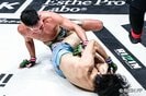 いざ試合が始まるとサウスポーの大世は左の蹴りと低空の片足タックルを交えながら試合を進め、2Rには宇佐美にバックを取らせながらアームロックを狙う、いわゆる“桜庭ロック”も披露。3Rに両足タックルでテイクダウンを奪って寝技に持ち込むと膝十字を極めて宇佐美からギブアップを奪った。