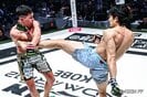 大世はサウスポーから繰り出すリーチを活かした左ミドルとインローを蹴り分け、時折、左のロングフックなどパンチの強打も織り交ぜることで、自分の間合いと距離をキープ。コンパクトなパンチを得意にしている宇佐美に対して、パンチを打たせる距離を作らせなかった。