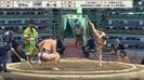 端正な顔立ちの“美青年”鶴ノ海は土俵上で仕切り線に立つと、まるでスローモーションのように足をゆっくり高々と上げる美しい四股を披露した。房州山がつっかけてから2度目の立ち合い、素早く左に潜り込んだ鶴ノ海は、すぐに左の下手を掴むと、組み合って相手を振り回しながら腰で跳ね上げるように豪快な投げ技を決めた。予想外の展開に客席からはどよめきと拍手が沸き起こった。下手投げで勝った鶴ノ海は2勝目。敗れた房州山は2敗目を喫した。