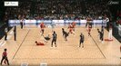 見たこともないようなスーパープレーが飛び出した。男子バレーで、ボールがコートに着地する寸前、倒れ込んでいた選手が身をひるがえすようにして足でボールを蹴り上げたのだ。この“オーバーヘッド”の神技レシーブにファンが騒然となった。