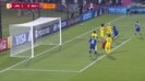再びこぼれたボールは浅田のやや後ろに飛んだが、バックステップから体勢を倒しながら右足を振り抜く。難しい体勢だったため、うまくミートできずにシュートは弱くなってしまったが、これが南アフリカの選手たちをすり抜けてゴールへ。3秒間で3度蹴り込んだ浅田の魂のシュートで日本に先制点をもたらした。