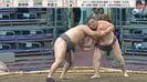 序二段六十三枚目・藤雄峰(藤島)と序二段六十五枚目・香富士(春日野)、勝ち越しをかけた3勝同士の一番。立ち合い正面から当たって組み合った両者。右を差した香富士、左上手を取って頭をつけた藤雄峰が、一進一退の攻防を繰り広げていった。その後も藤雄峰が香富士の肩付近に頭をつけたまま半身の体勢で組み、こう着状態に。1分、2分と続く長い相撲に客席からは拍手が沸き起こった。