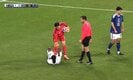 日本代表のGK早川友基(鹿島アントラーズ)が、突っ込んできた相手を吹っ飛ばして仁王立ち。そのフィジカルと気迫が大きな話題となっている。