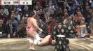 前頭三枚目・宇良(木瀬)が小結・隆の勝(常盤山)をすくい投げで下して5勝目を挙げた一番でのこと。