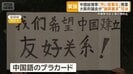 現場には中国メディアの姿も見られました。参加者の中には中国語のプラカードもありました。埋まらない、日中両国の溝。