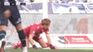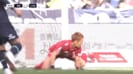 これに反応した一森は腰を落として、このボールをキャッチしようとする。しかしわずかに軌道がずれたことで、手で弾いてしまう。ボールはそのままゴールネットを揺らした。痛恨の失点に一森は頭を抱えて落胆した。