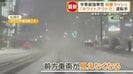 北海道では、強風に巻き上げられた雪で視界から前方の車両が消えてしまいました。