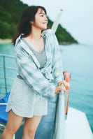 『余韻』では、オーストラリア・ケアンズを舞台に、笑顔はじけるキュートなビキニ姿、オトナの魅力あふれる艶やかなランジェリー姿、そして写真集ならではの大胆ショットを披露。