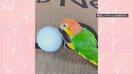部屋の中でボールを使って、器用に遊んでいるシロハラインコ。