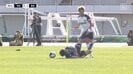 その試合の28分、思わぬアクシデントが発生する。高木が自陣の左サイドからドリブルでの持ち上がりを試み、プレスバックしてきた磐田のFW渡邉りょうに後ろから手を掛けられる形で倒される。すると次の瞬間、高木が前のめりに転倒する時に伸びた足が、渡邉の下腹部にヒットしてしまった。