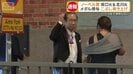 受賞後、会場から出てくると、記者からの問いかけに右こぶしで答えました。