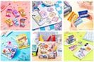 商品のラインナップは、お菓子のパッケージ風のデザインや、スーパーマーケットのポイントカード風のアイテムなど、ビビットな色使いで遊び心あふれる全25アイテムが登場。ポーチ、キーホルダー、缶バッジ、トートバッグなど、お気に入りのキャラクターを身に着けて買い物に行きたくなるアイテムが揃っている。