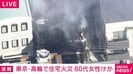 東京・港区にある2階建ての住宅で火事があり、現在も消火活動が続いています。この家に住む80代の女性がけがをしました。