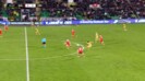 2点リードで迎えた32分、鎌田はDFマクサンス・ラクロワとの縦関係を作りパスを呼び込む。これに反応したFWシーン・ボイドとFWジョン・マーティンがプレスバックをしてきたが、鎌田はダイレクトでラクロワにボールを返した。