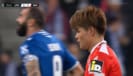 ダブルボランチの一角で先発した佐野は70分、圧巻の中央突破を見せる。マインツが右サイドから攻め込まれるも、ボックス内からのシュートをGKダニエル・バッツがセーブ。右サイドへのこぼれ球を回収した佐野は、相手2人に囲まれた状態でも迷うことなく突破を図る。