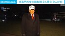 男は現場から逃走しています。警察は容疑者とみられる黒い服装の男が、大学から立ち去る様子を映した防犯カメラの映像を公開しましたが、顔が判別できず、捜査は難航しているということです。