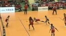 女子バレーボールで、ネットを越えたところから“ストン”と落ちる不思議な軌道のサーブが炸裂。相手レシーバーが前のめりにコートに崩れ落ちると、大事な場面でのエースに味方ベンチが歓喜の舞を披露した。