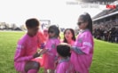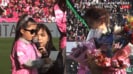 試合の幕が閉じた後のセレモニーでは、妻でタレントの丸高愛実と3人の子供たちもピッチに登場。花束贈呈が行われた。そして会場MCが「お子様を代表し、ご長女様よりお手紙のプレゼントです」と紹介すると、柿谷は家族と向かい合う形で立つ。長女はマイクに向かって、父へ宛てた手紙を読み上げた。