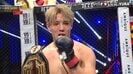 入場曲が流れると、ベルトを手にYURAそっくりの男性が入場。時折ほほえみを浮かべて花道を歩いてリングサイドまで歩みを進めると、フェザー級のベルトをカメラに掲げてポーズを決めた。がしかし…曲は止まらずにさらにもう一人が入場。こちらが正真正銘のYURAで、先ほどの男性は、YURAの弟・AIRAだった。